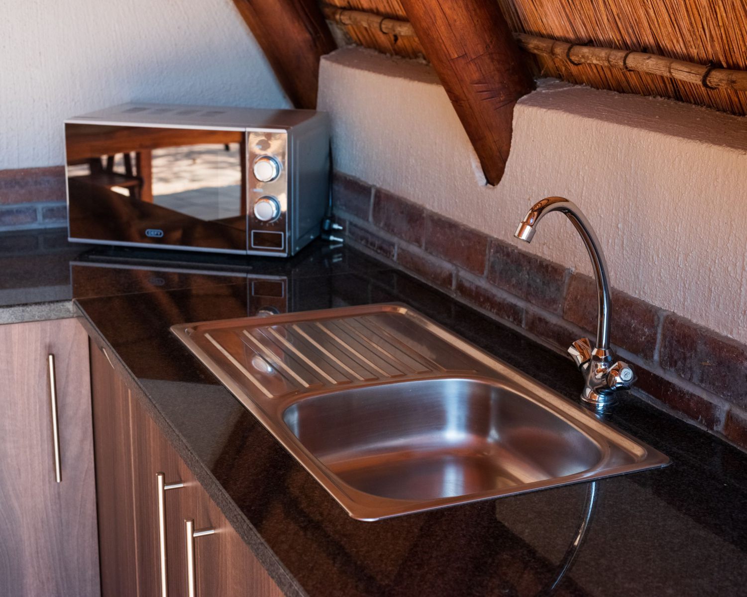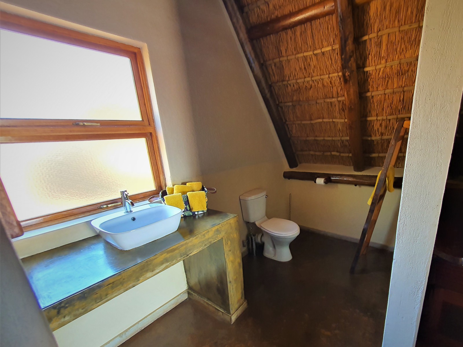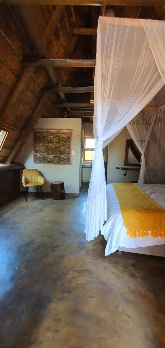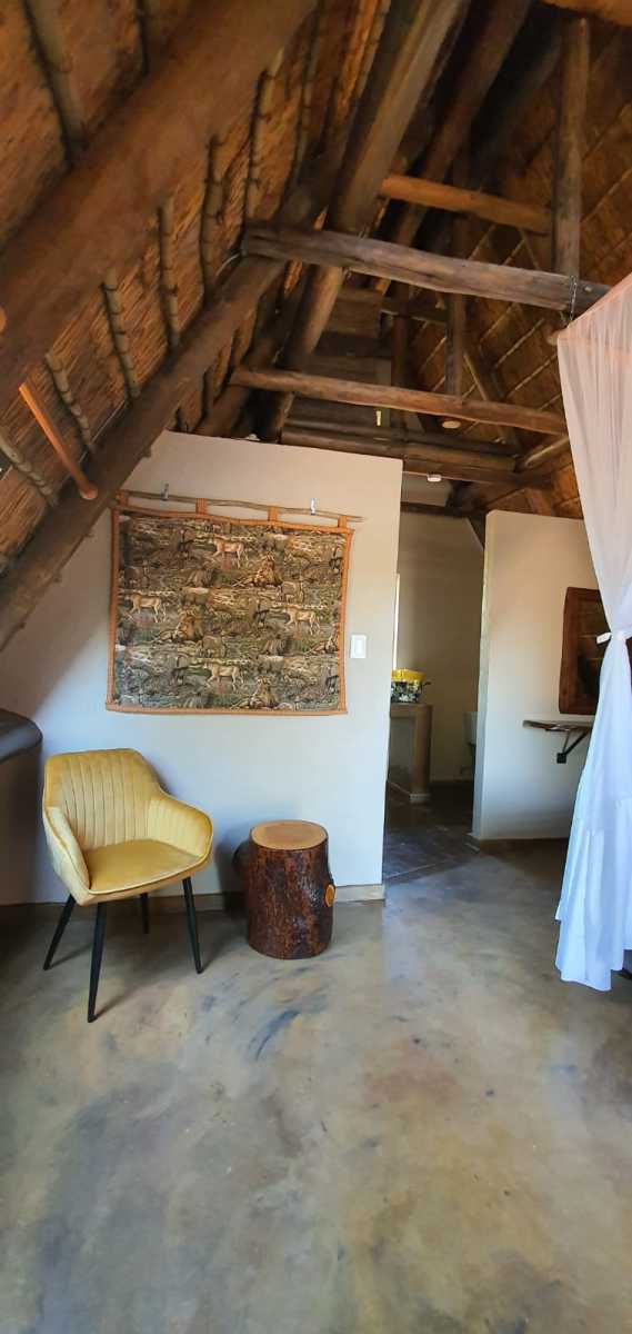 De chalets geven veel sfeer en passen perfect in onze bush omgeving. Deze ruime A frame chalets zijn perfect voor 2 personen maar er kan tegen bijbetaling een extra bed geplaatst worden. Ze beschikken over alles wat een zelfcatering accommodatie nodig heeft. Vanaf je eigen terras kun je in alle rust genieten van de bush geluiden en de dieren om je heen.