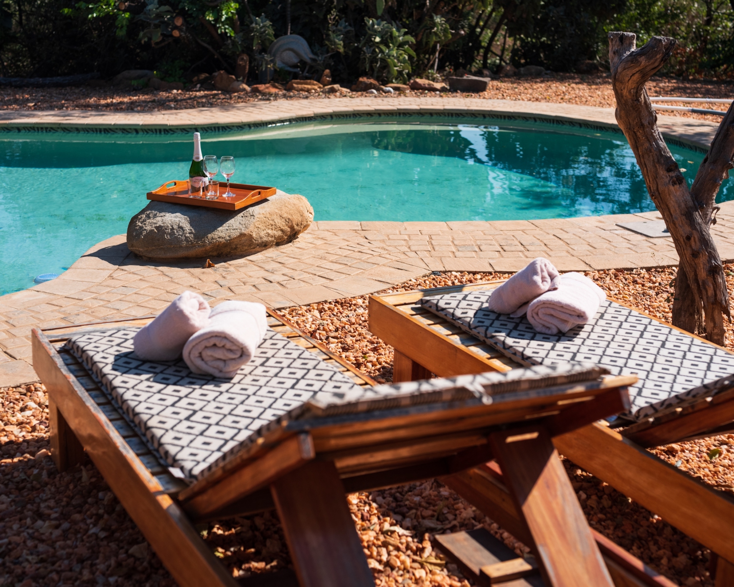 Naast de bush, en onze accommodaties bevat onze lodge ook nog een heerlijk zwembad waar je een verkoelende duik kunt nemen.
